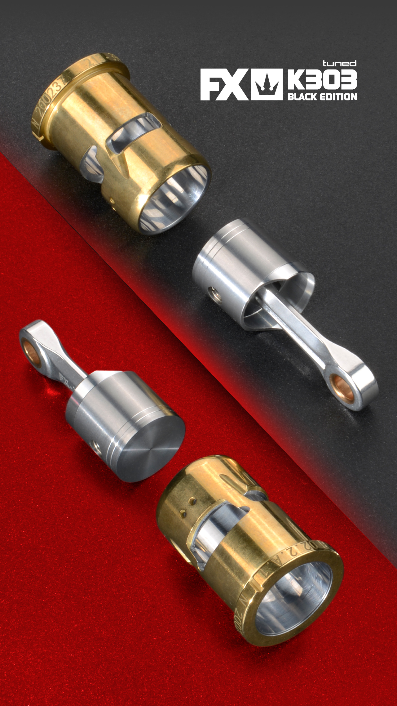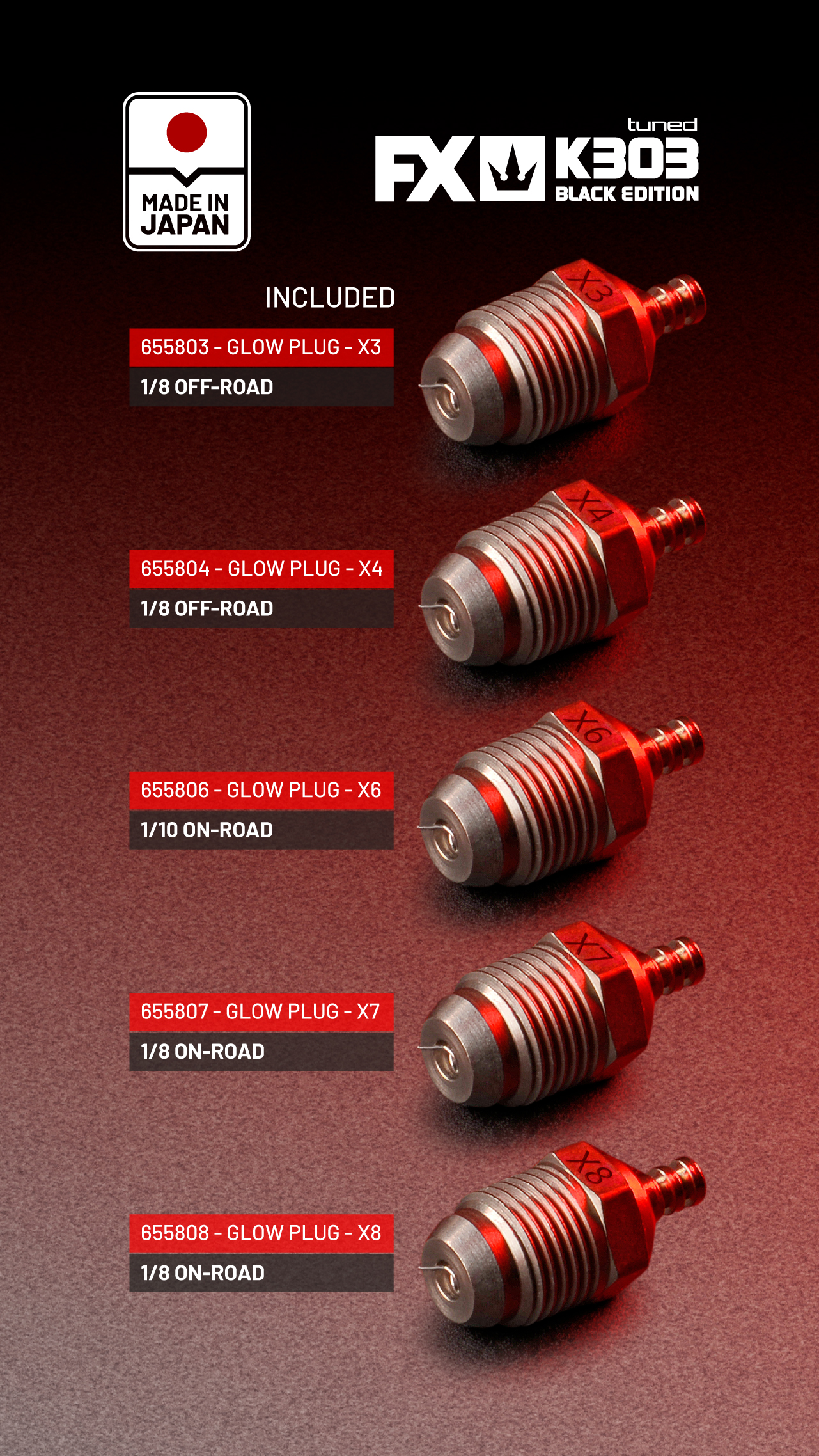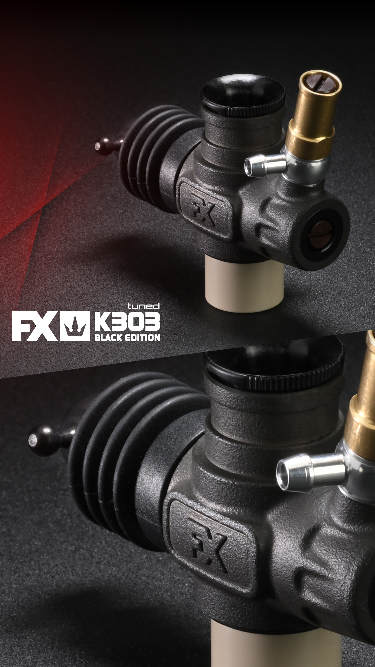 Each K303 Tuned engine includes the FX X3 glow plug, optimized for reliable ignition and stable combustion.