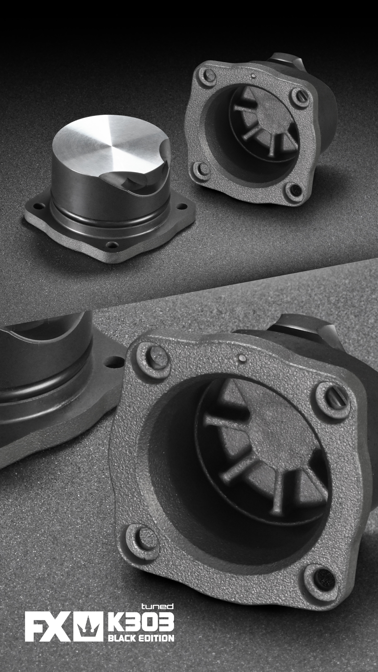 The K303 Tuned crankshaft features a friction-reducing DLC coating and dual tungsten balancing for superior rotational stability.